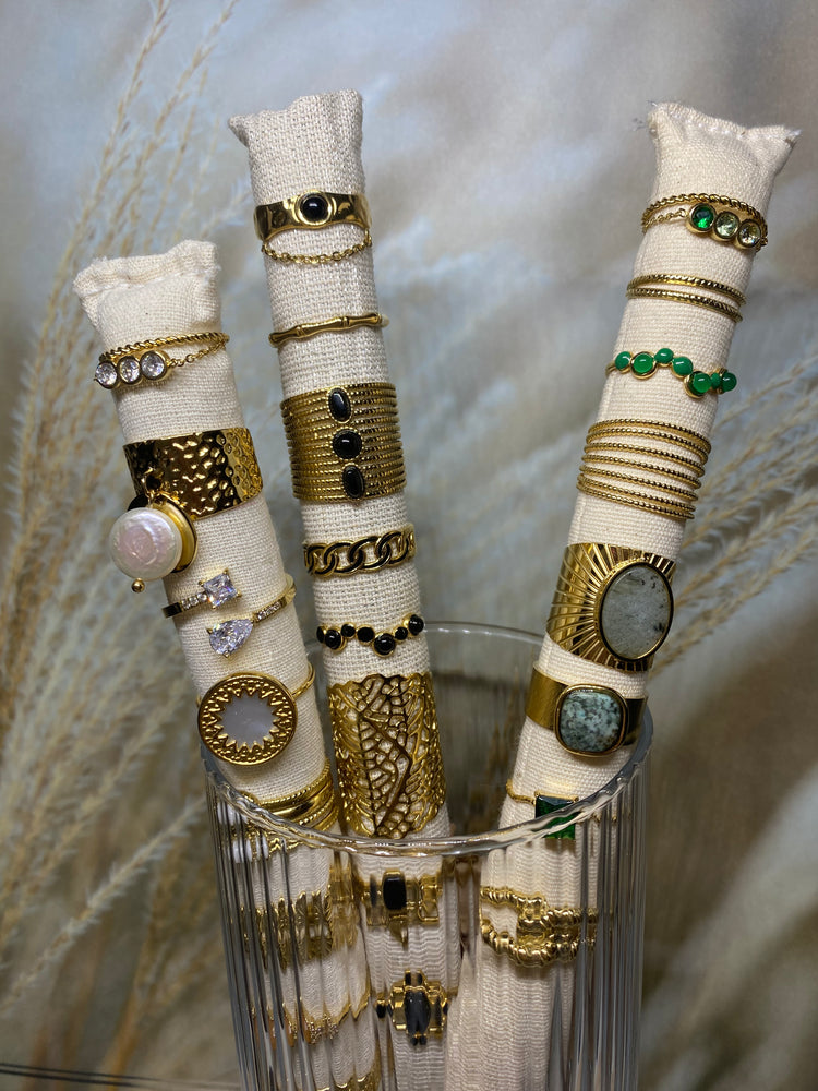 Superbe sélection de bagues avec différents styles. Que vous préfériez les bagues simples et élégantes, les bagues ornées de pierres naturelles ou les bagues avec des motifs uniques, vous trouverez LA bague parfaite pour compléter un look ou pour offrir en cadeau. Trouvez celle qui vous fera craquer!