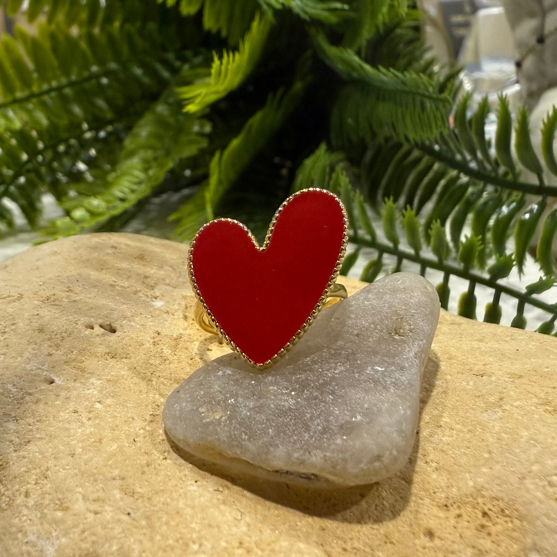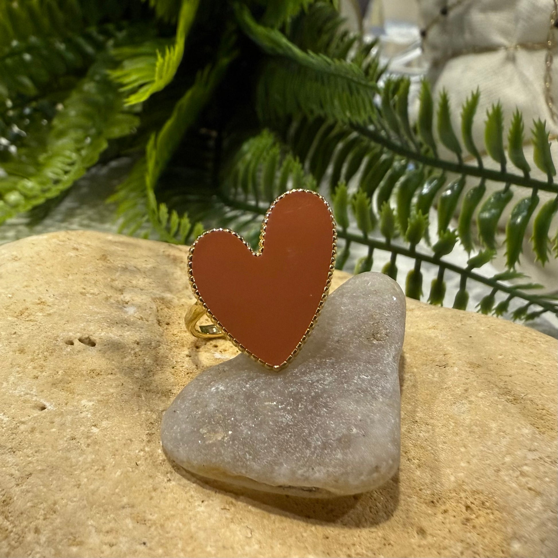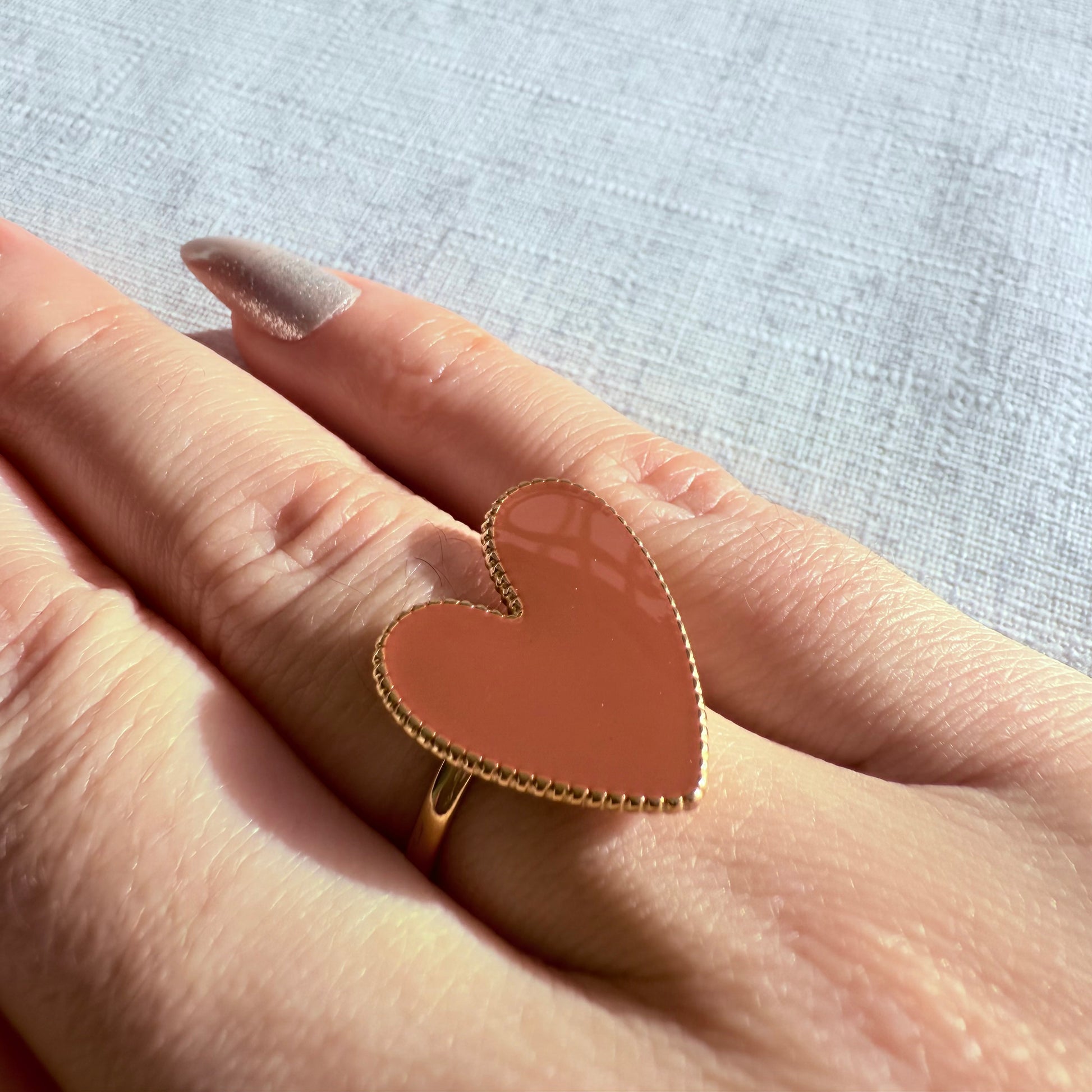 Bague gros cœur plat coloré effet dentelle autour.