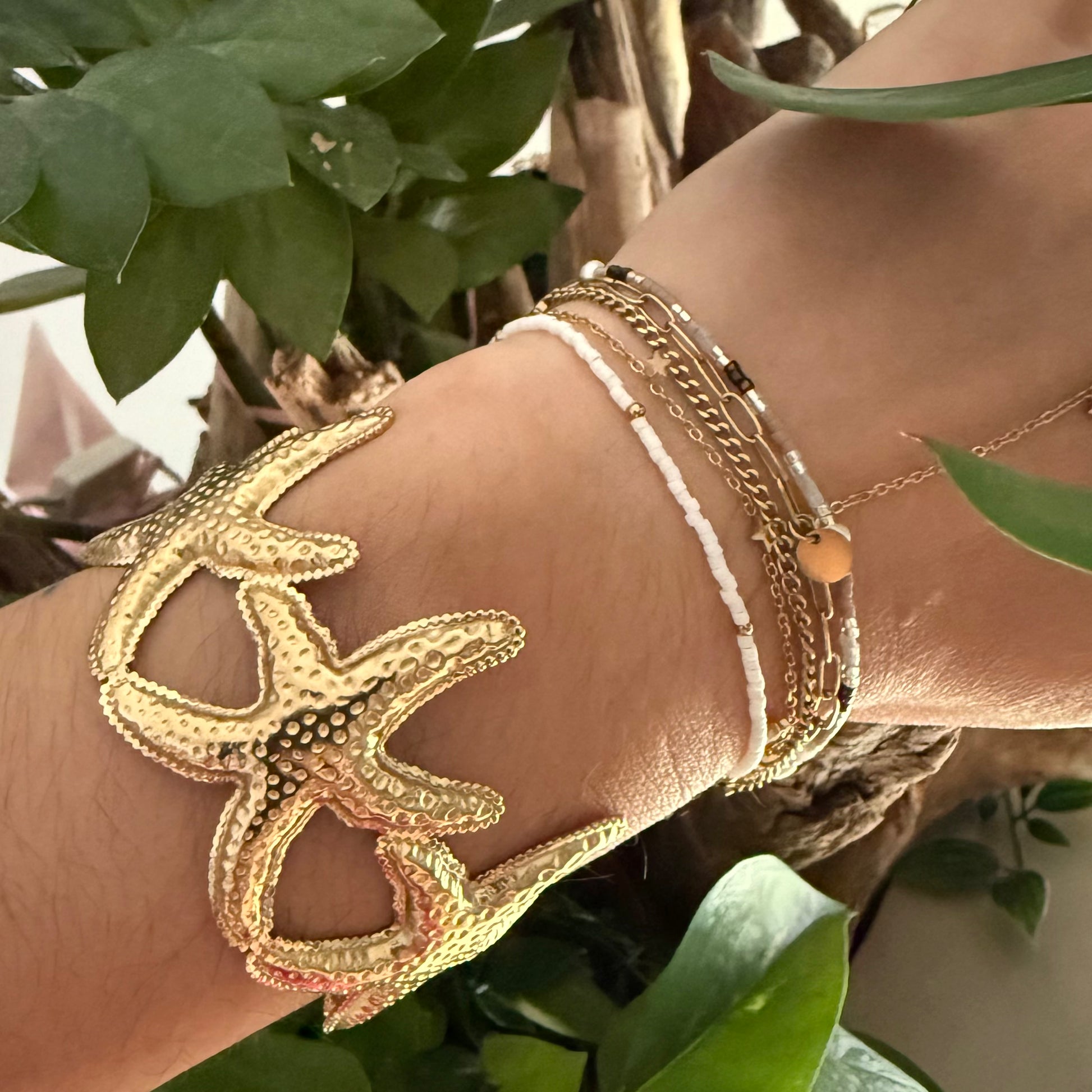 Eblouissez avec la manchette Lamentin et de la paire de boucles d'oreille Baie-Mahault pour partir en vacances sans sortir de chez vous!