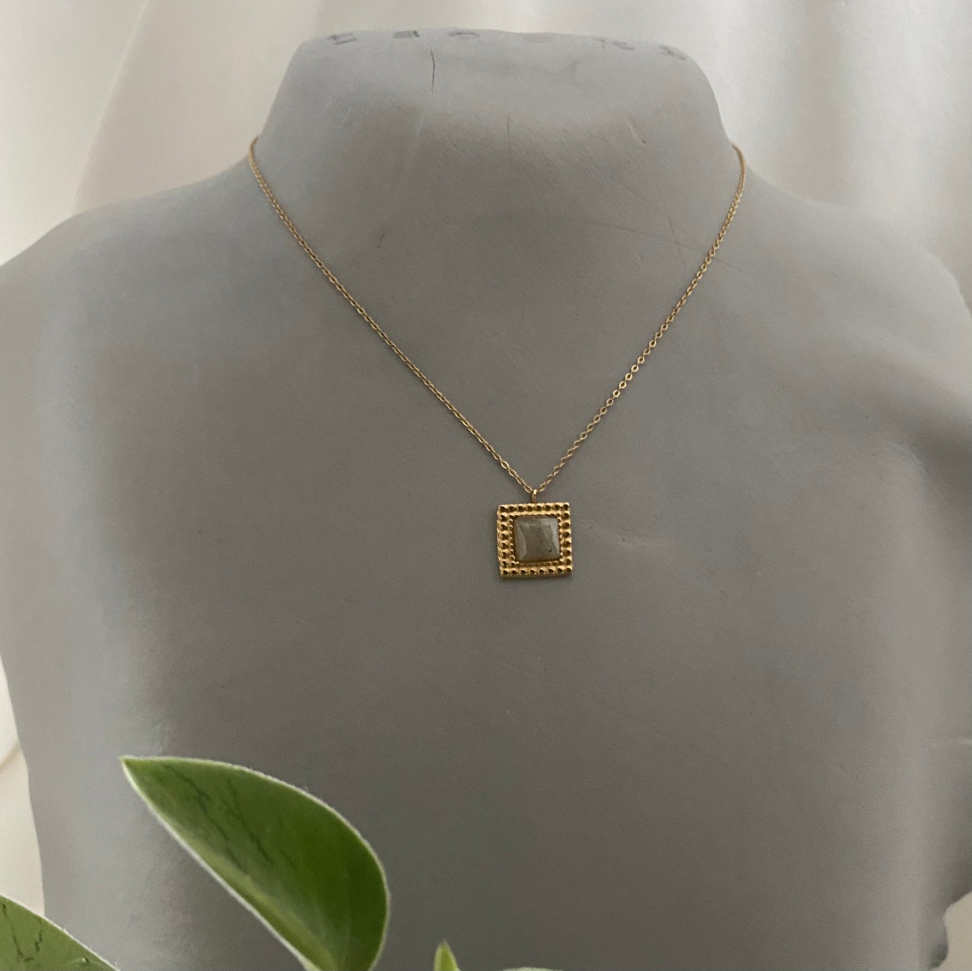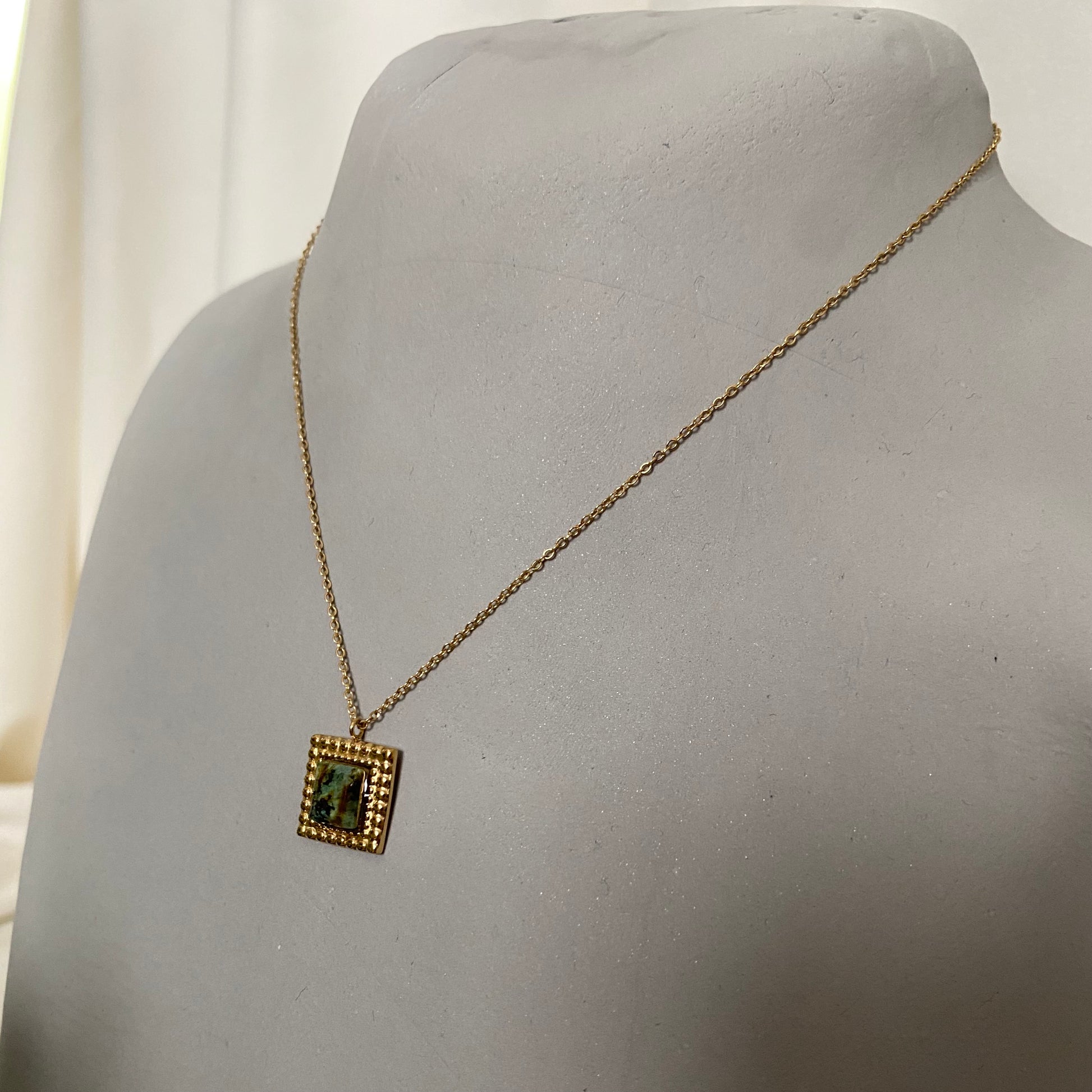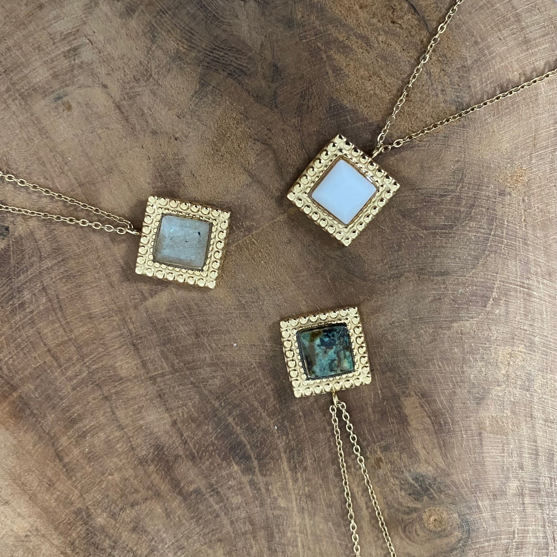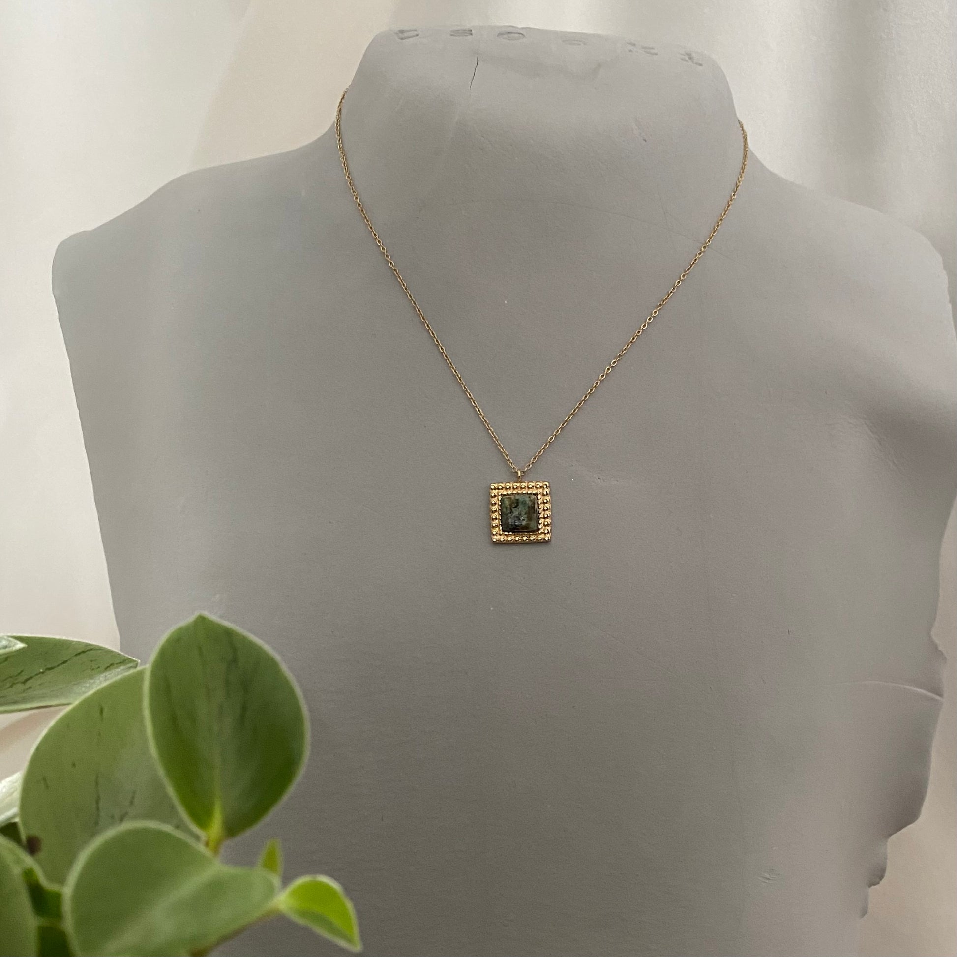 Ce collier est fait de pierre naturelle, et chaque pierre est unique, la couleur peut légèrement varier d’un bijou à l’autre.