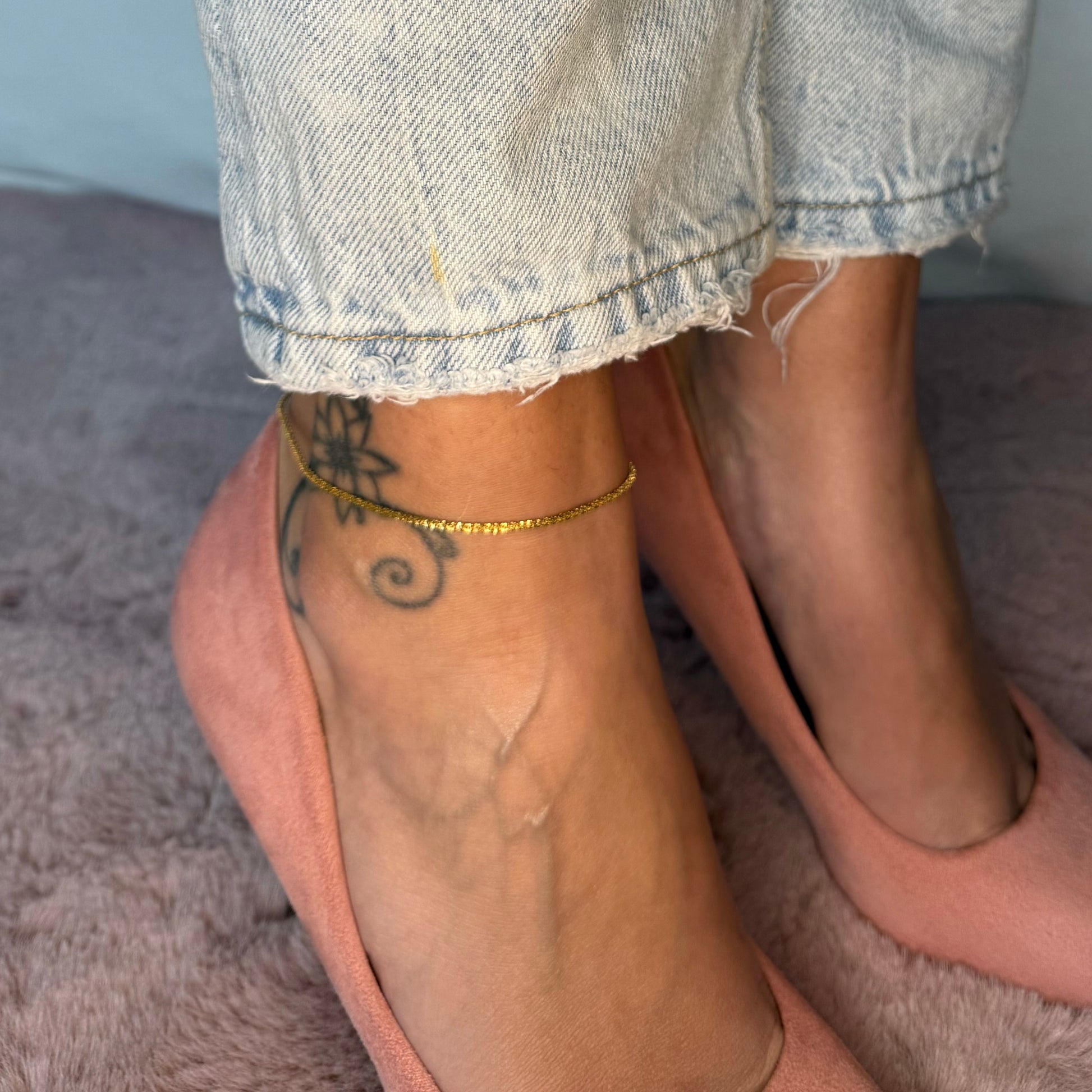 Comme la plupart des bijoux proposés par Maison Tsooki, la longueur de la chaîne de cheville est ajustable.