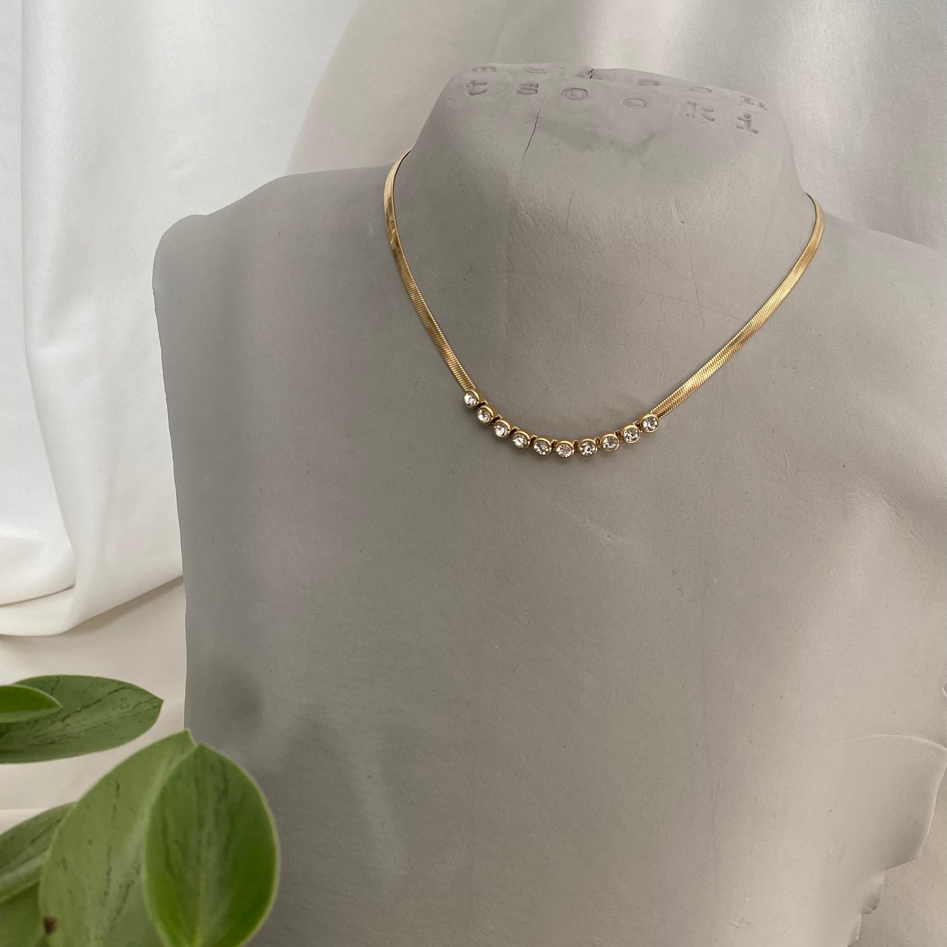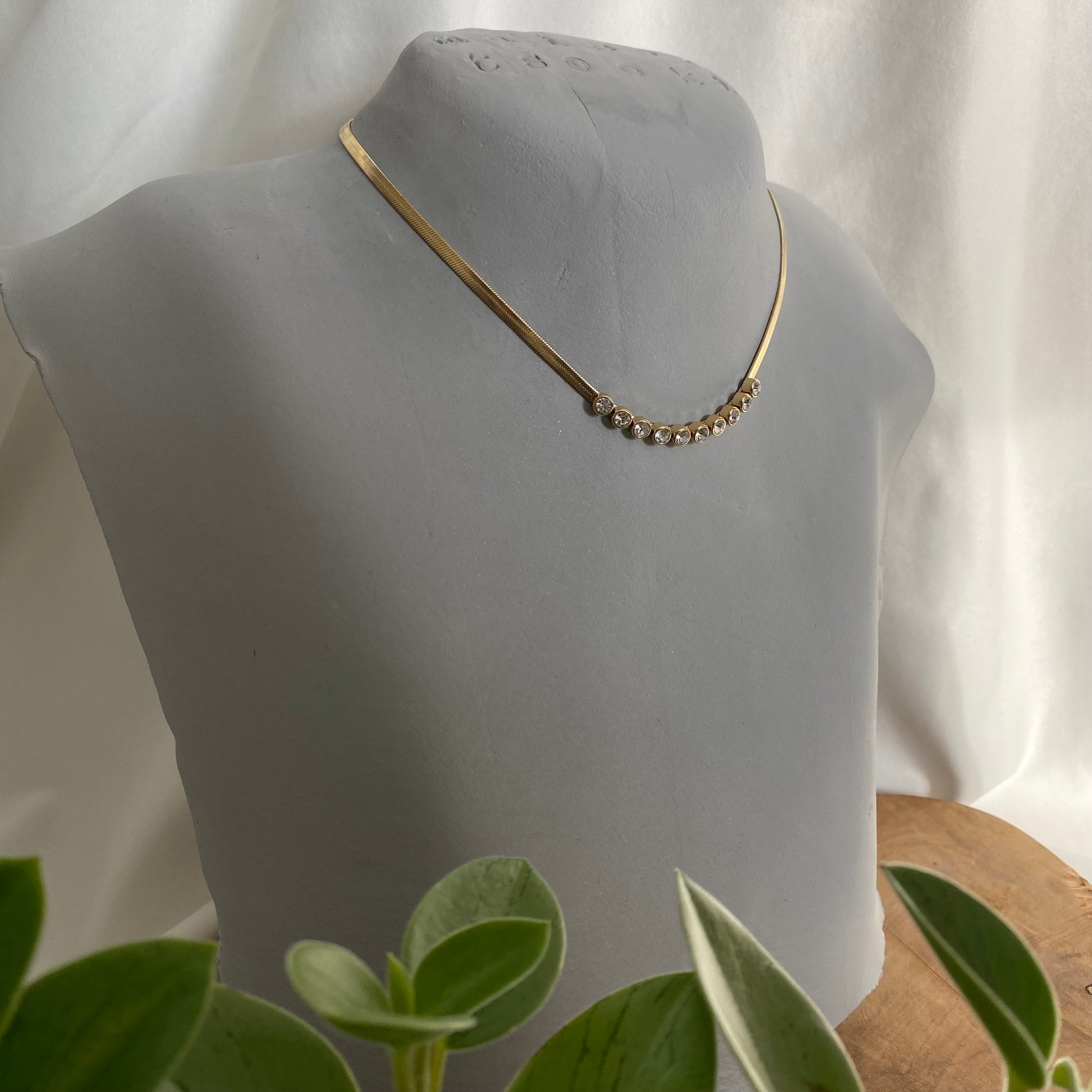 Chaîne plate ornée de 10 pierres blanches type zirconium.