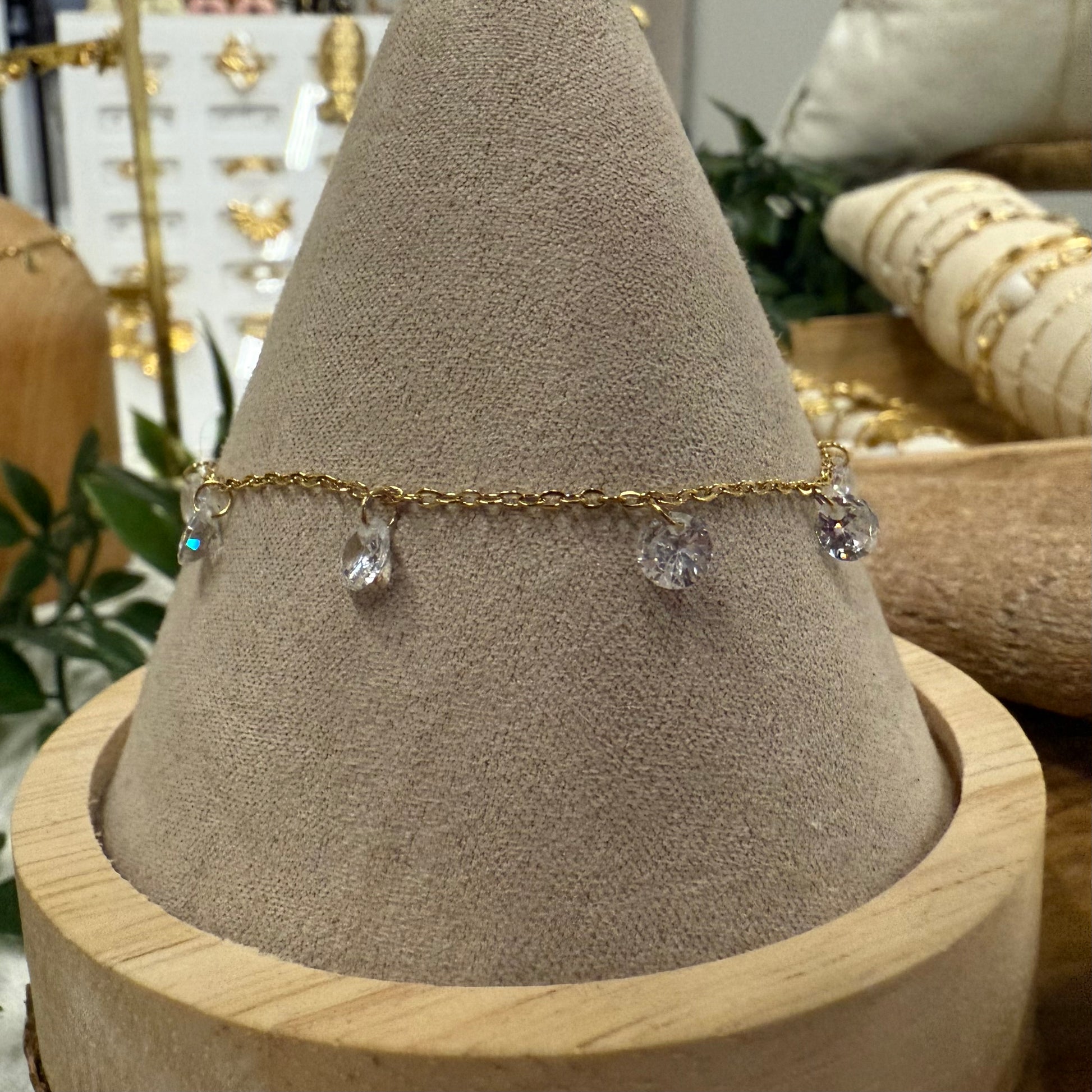 Le bracelet Palombaggia est fait d’une chaîne simple ornée de strass.