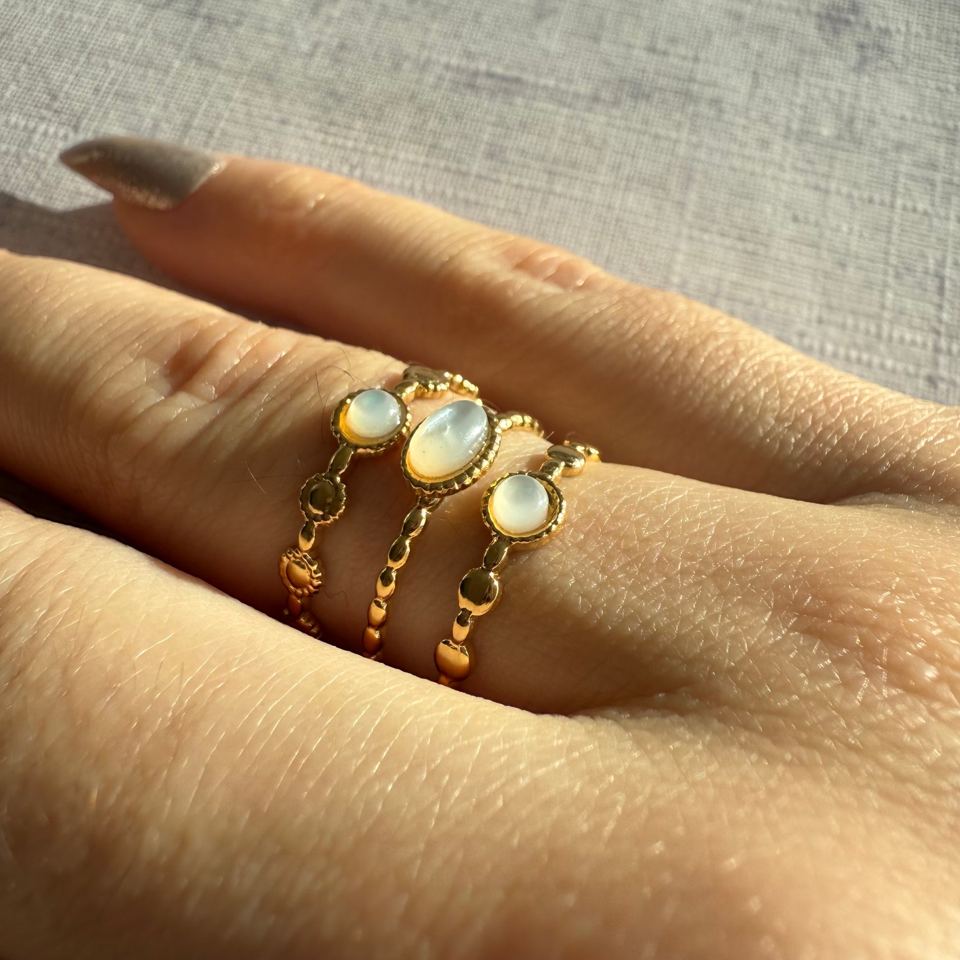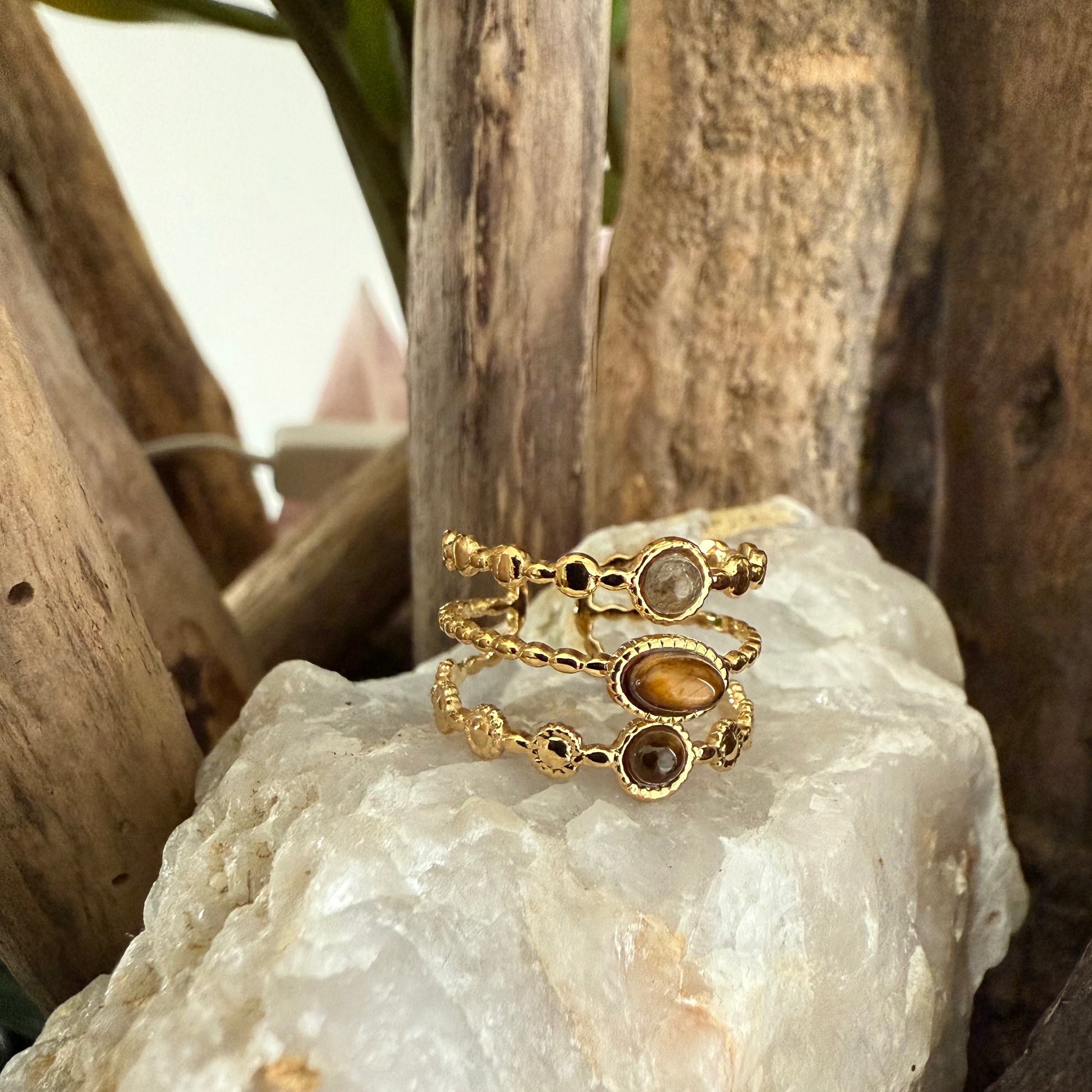 Avec la bague Santiago vous avez 3 bagues en 1, avec des pierres assorties.