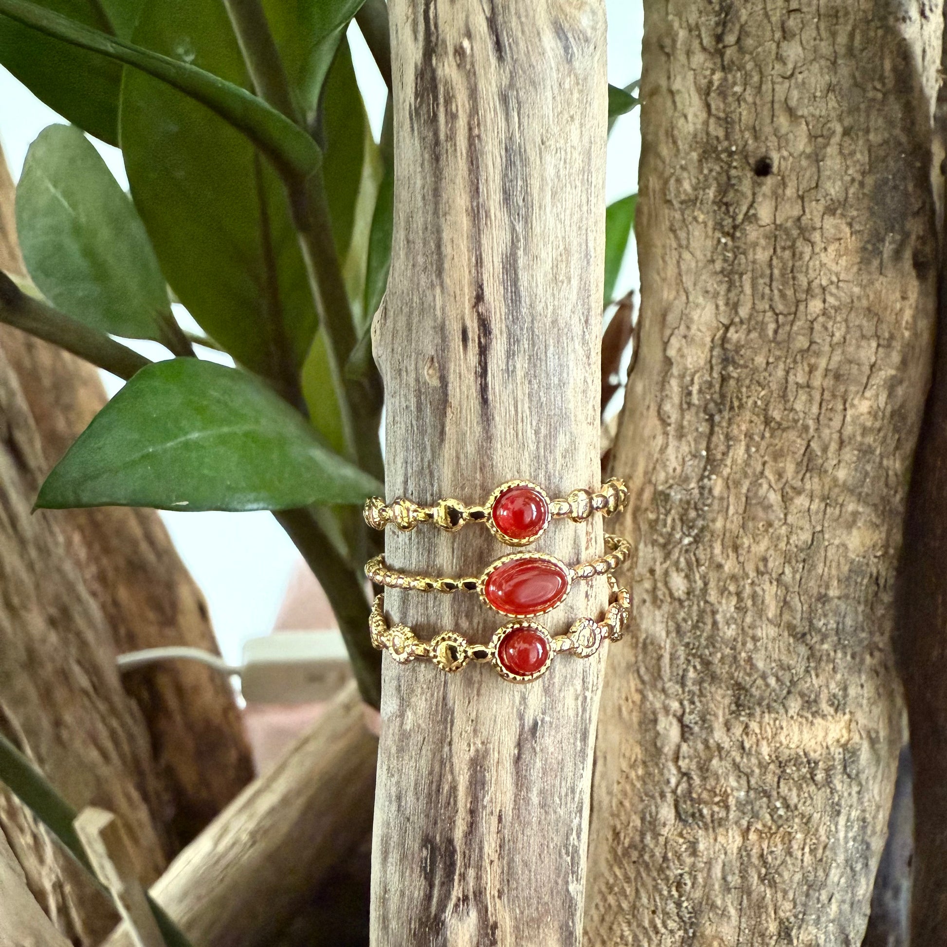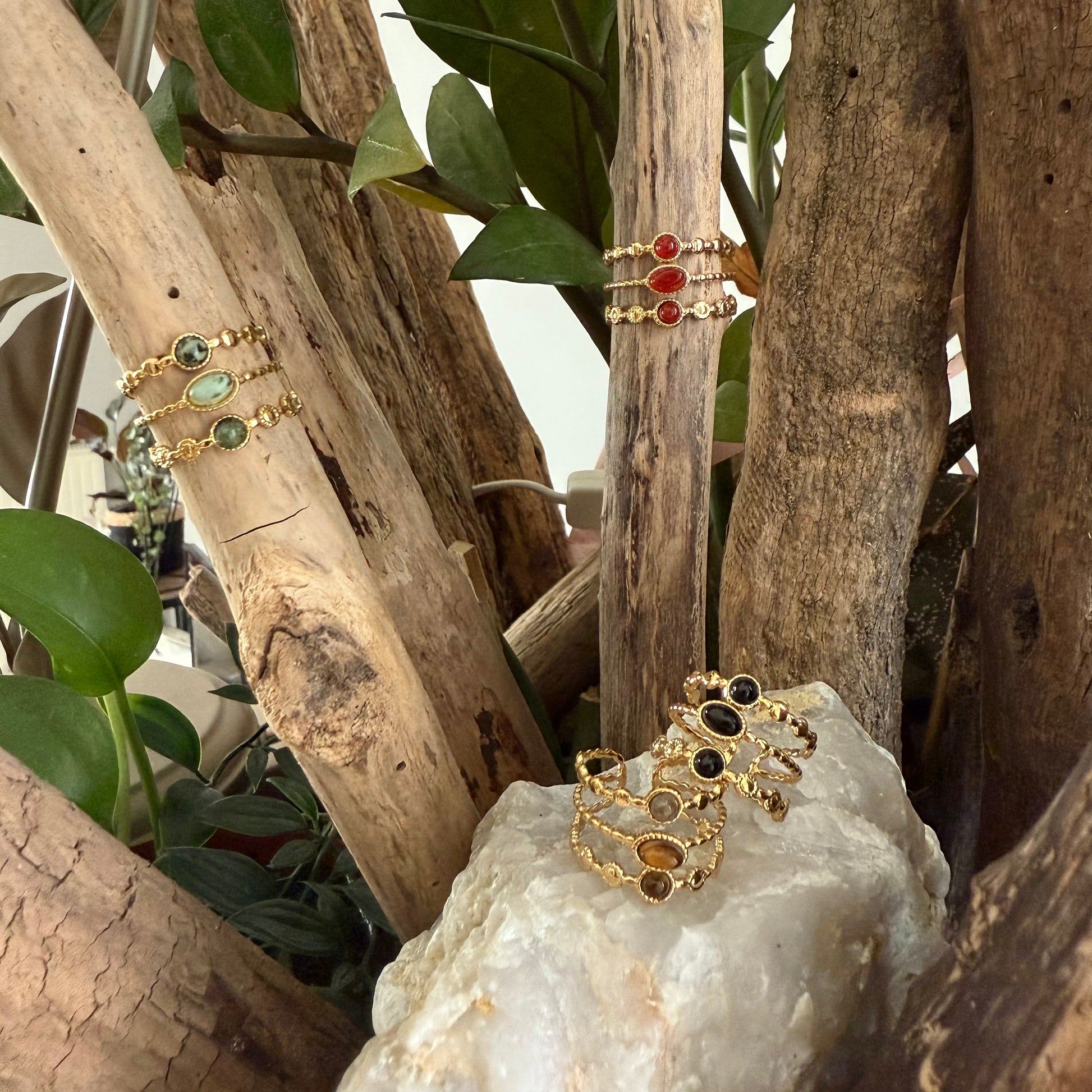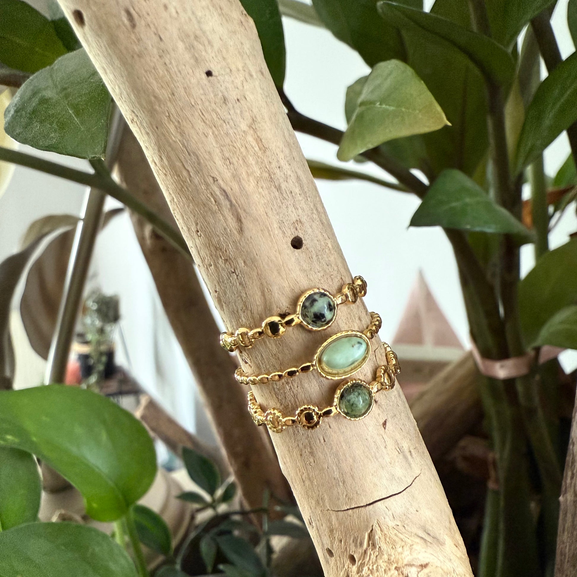 Les pierres étant naturelles, chaque bague est unique, et les variations de couleurs peuvent être plus ou moins panachées.
