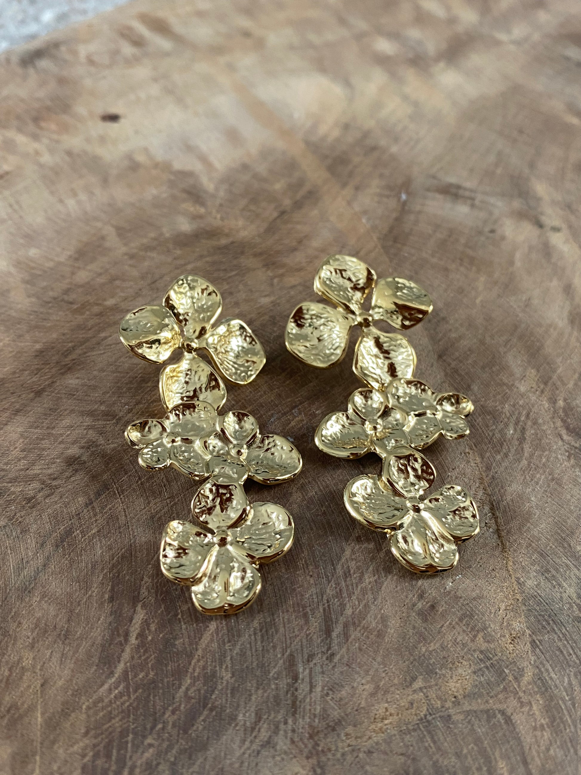 Paire de boucles d’oreilles fleuries en acier inoxydable.