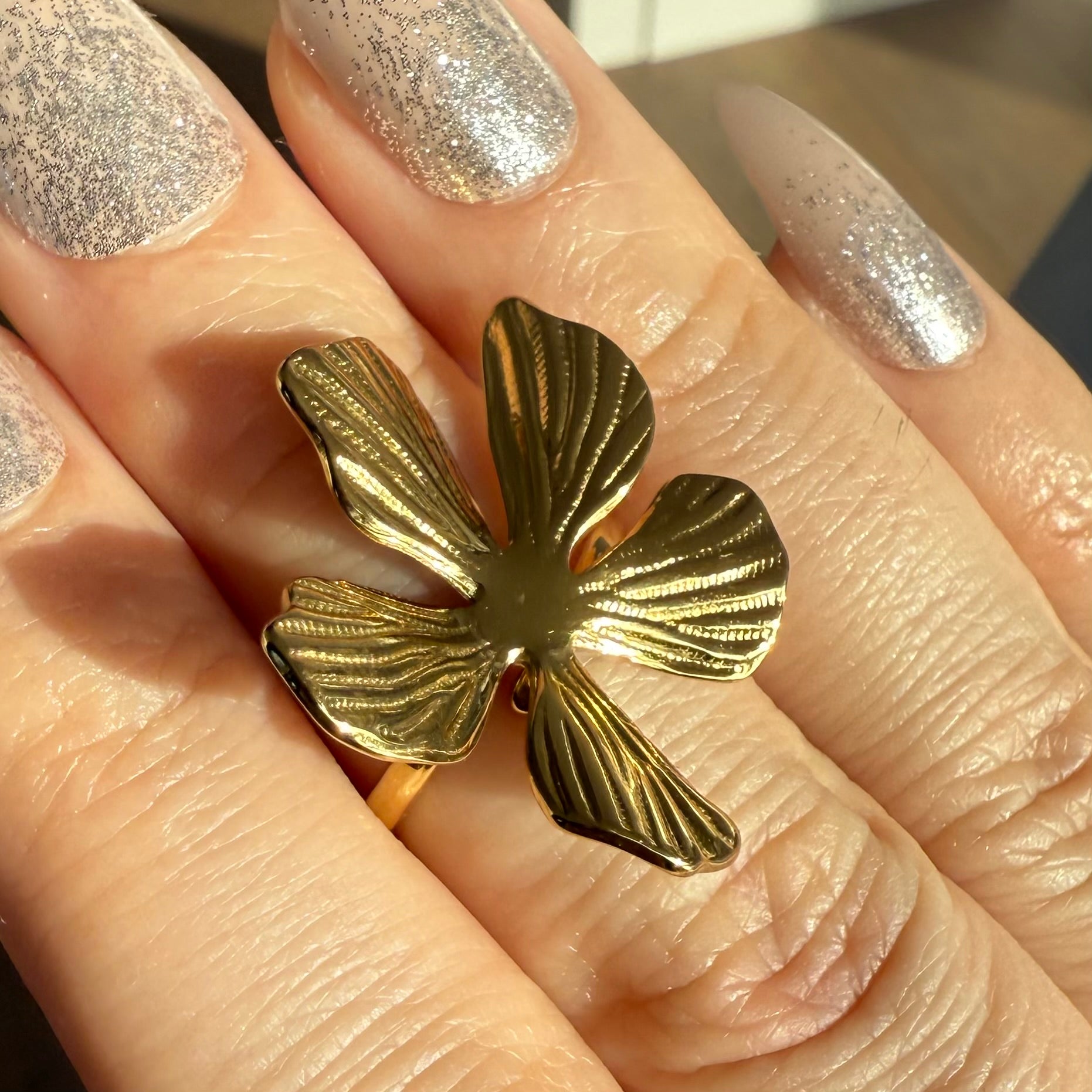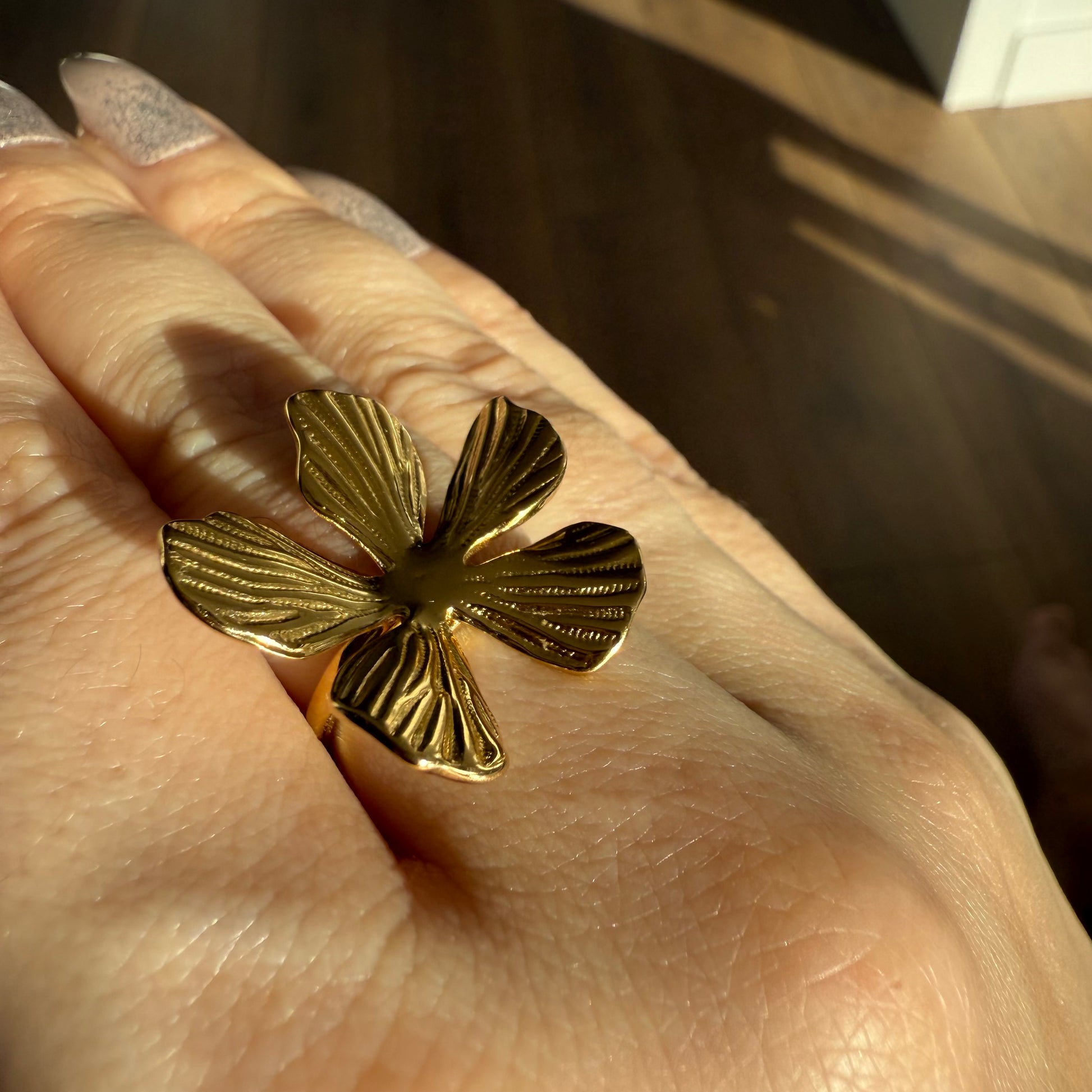 Bague grosse fleur texturée