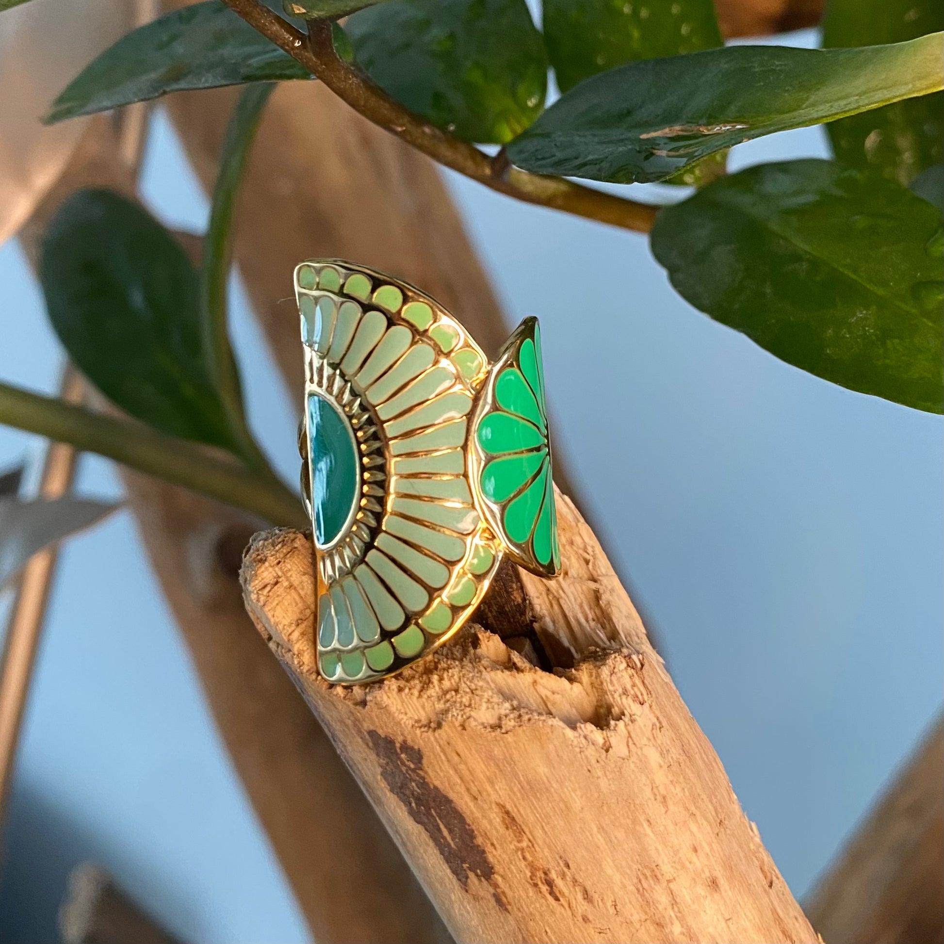Bague demi éventail en camaïeu de couleurs assorties.