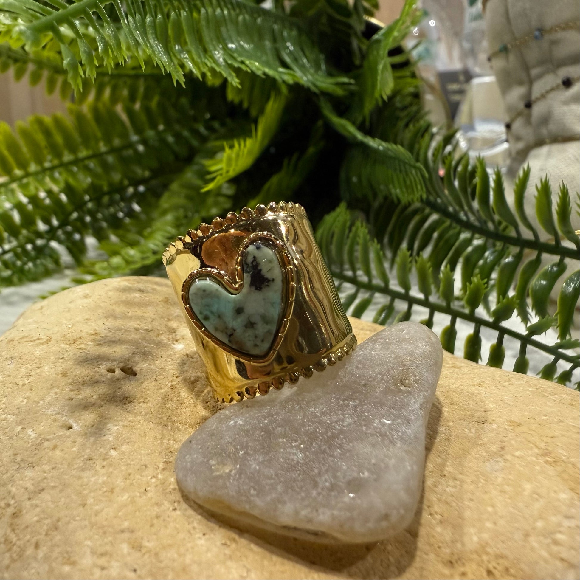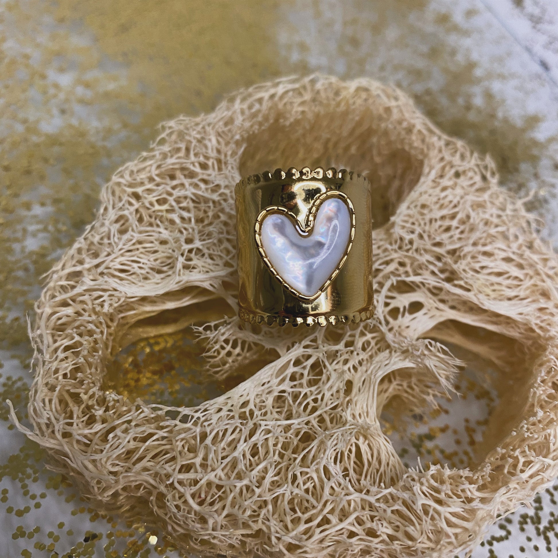 Avec sa pierre en forme de cœur et sa largeur provocante c'est la bague parfaite pour faire des jaloux. Cette bague ajoutera une touche audacieuse à n'importe quelle tenue.
