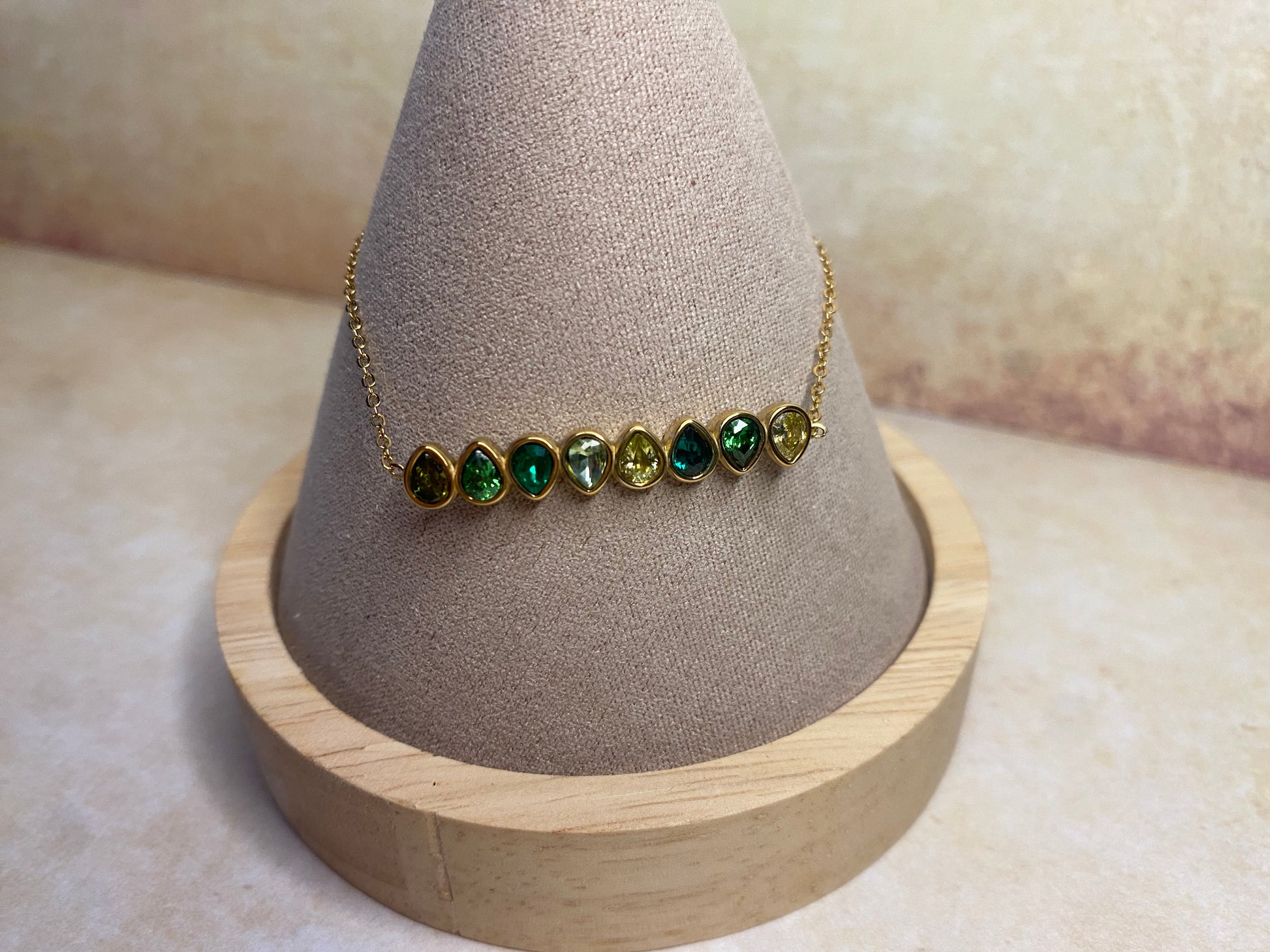 Bracelet composé de 8 gouttes assorties en camaïeu ou unies.
